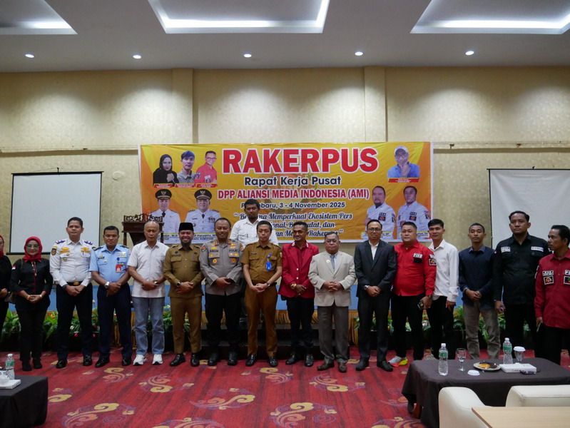 Pekanbaru, Dewan Pimpinan Pusat (DPP) Aliansi Media Indonesia (AMI) menggelar Rapat Kerja Pusat (Rakerpus) Tahun 2025 di Hotel Resty Menara, Pekanbaru, pada 3–4 November 2025. Kegiatan dua hari ini mengusung tema “Bersama Memperkuat Ekosistem Pers Profesional, Berdaulat, dan Berkelanjutan Menuju Rakernas.”